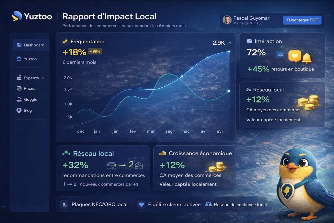 - Plaques NFC / QR pour chaque commerce
